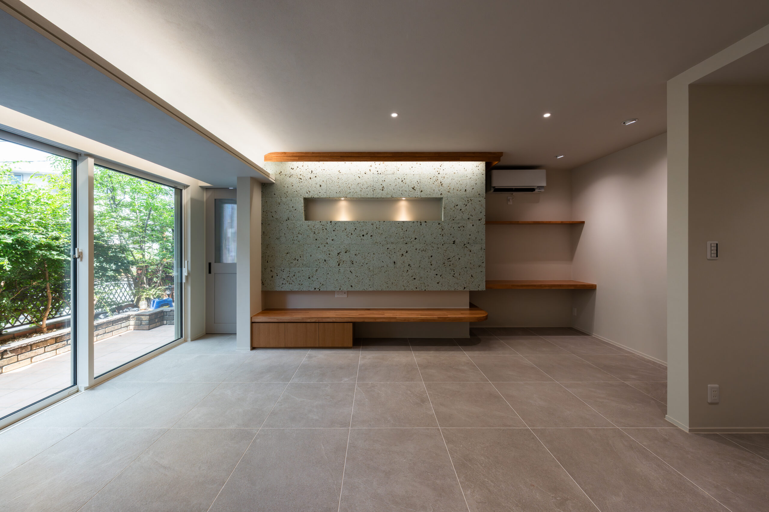 内壁には既存の素材を最大限に活かすコンクリートとモルタルを使用