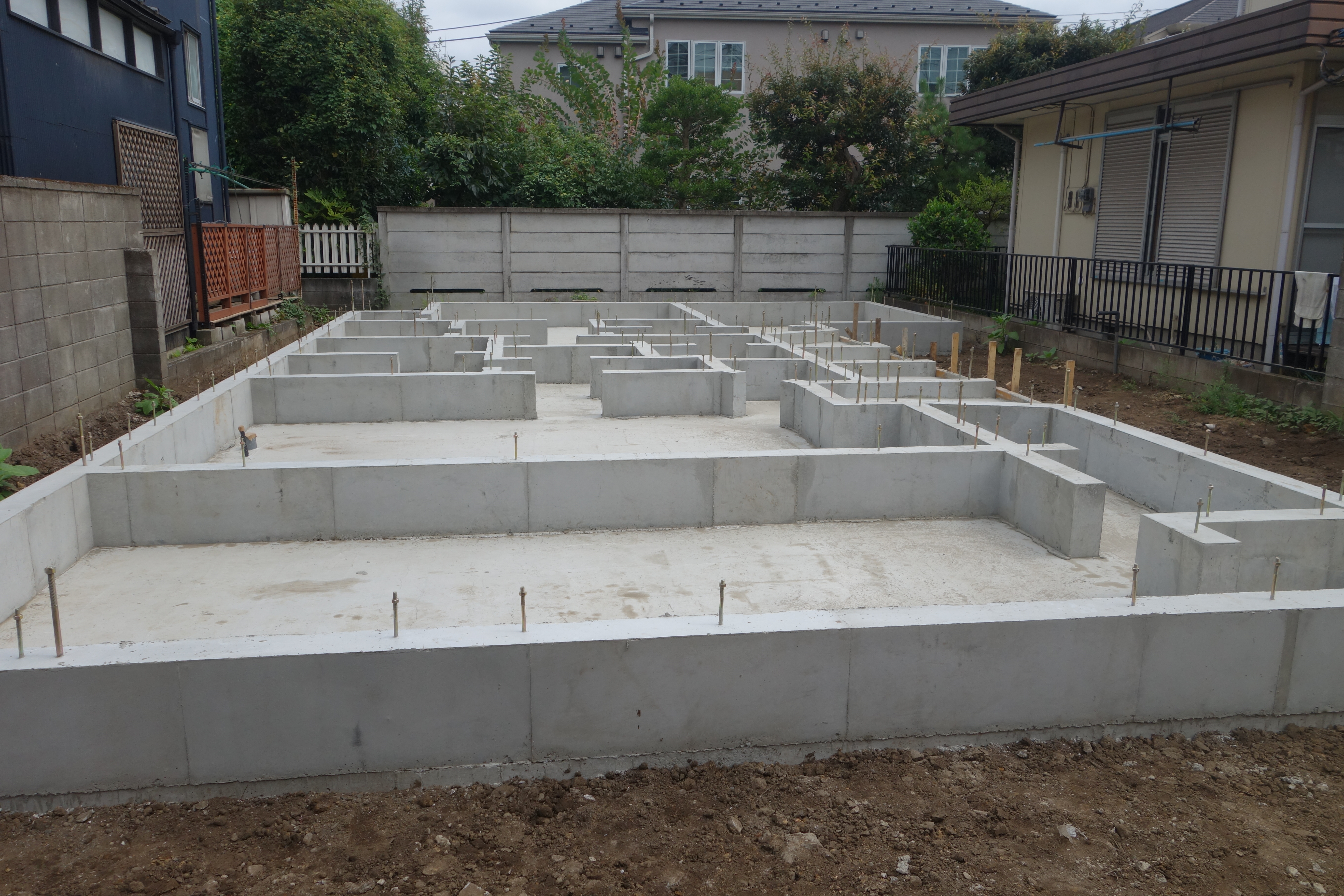 夏休み後、上棟予定の地元下馬6丁目で基礎工事が終わりました。