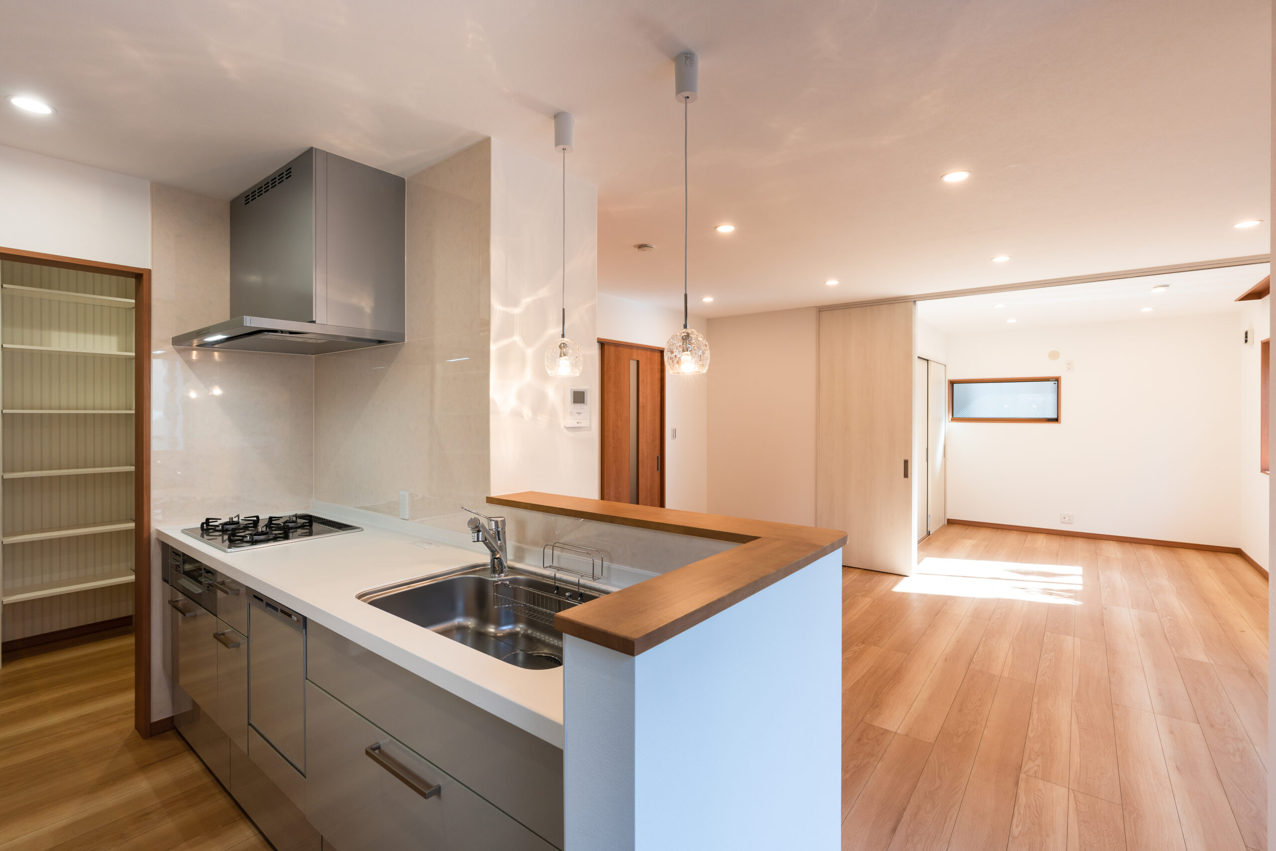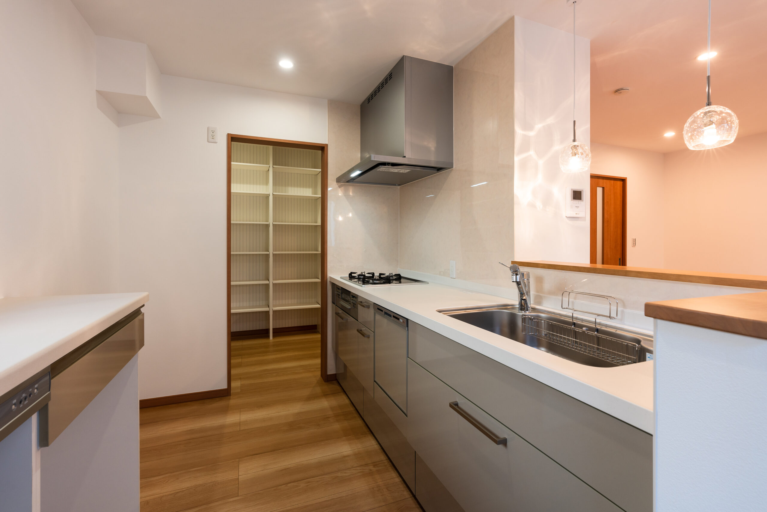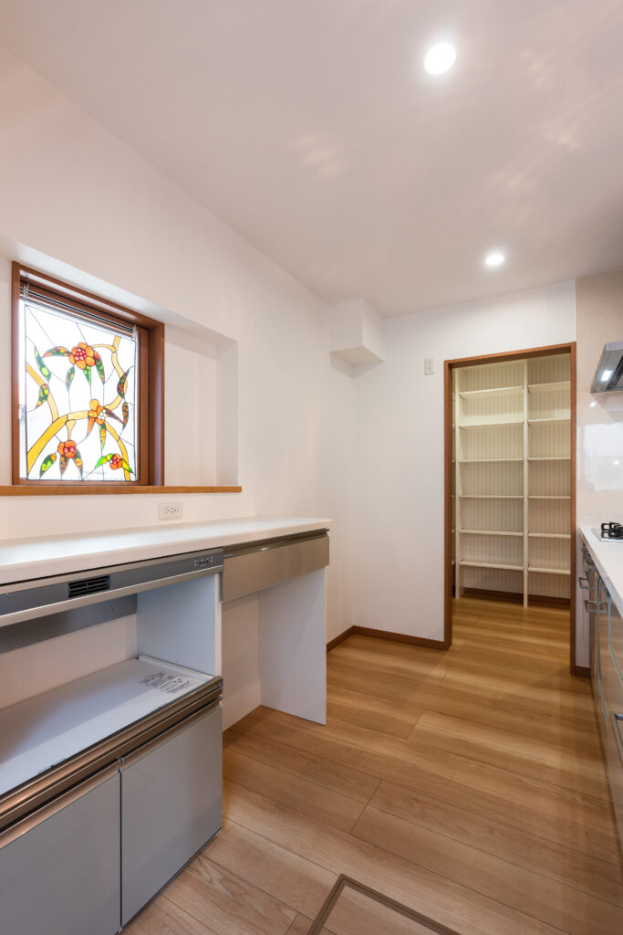 キッチン横には大容量のパントリーを設置。